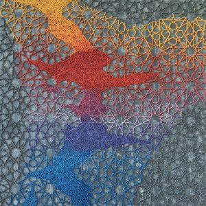 While her works may initially recall Bauhaus aesthetics, they fundamentally diverge from them. In the Bauhaus tradition—exemplified by artists such as Klee, Kandinsky, and Albers—geometric form is understood as universal, detached from history, locality, and cultural specificity. Geometry functions as a rational, functional, and culture-independent visual language. In Farid’s work, this logic is reversed. Geometry becomes a carrier of cultural memory: historically charged, ritualistic, and cosmological as much as mathematical. It is neither purely decorative nor functional. Within Islamic ornamentation, geometry operates as the earthly manifestation of divine order.